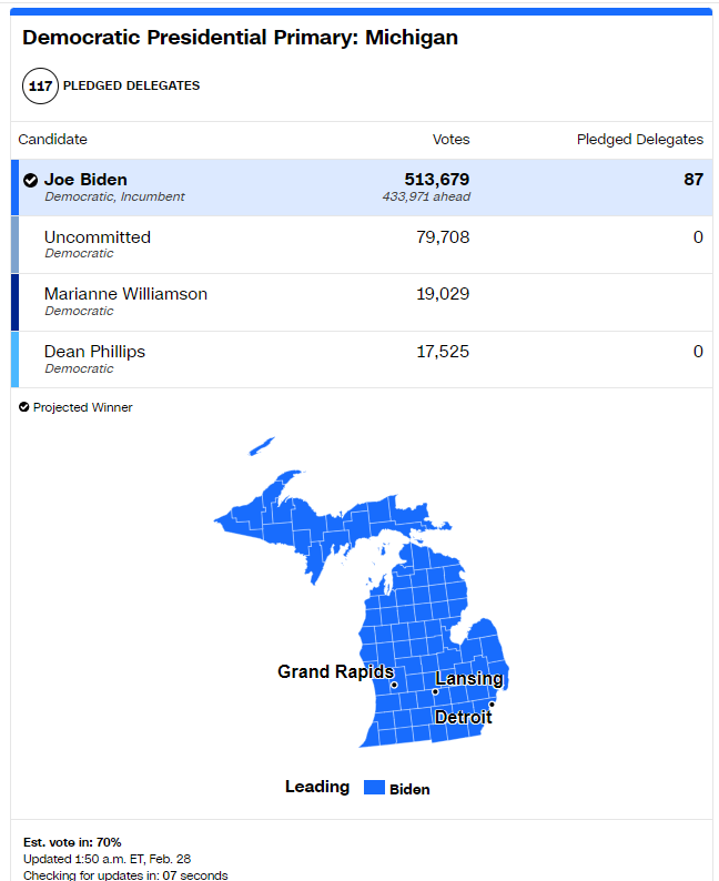 Джо Байден в Мичигане набрал 513 679 голосов. Но, несмотря на его положительные результаты, почти 15% избирателей-демократов отказались отдавать свои голоса за любого кандидата.