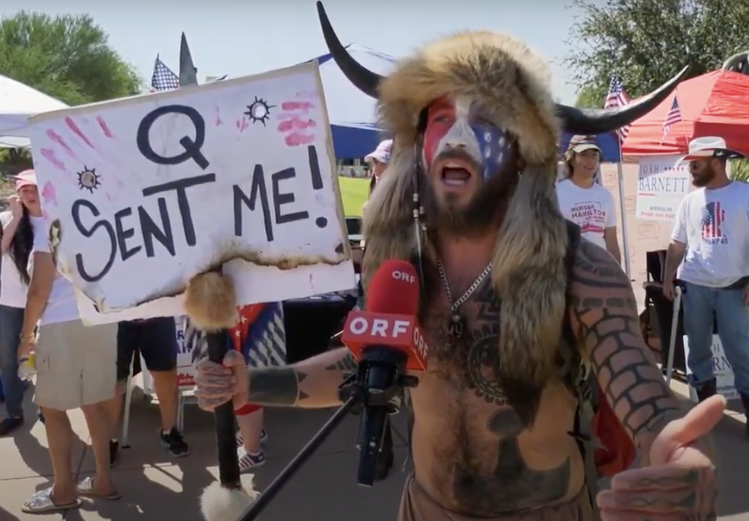 В 2018 году Анджели присоединился к движению QAnon и стал его лицом. В прошлом году его видели на митингах сторонников этой теории в различных городах, где он появлялся в образе шамана с рогами на голове и раскрашенным лицом.
