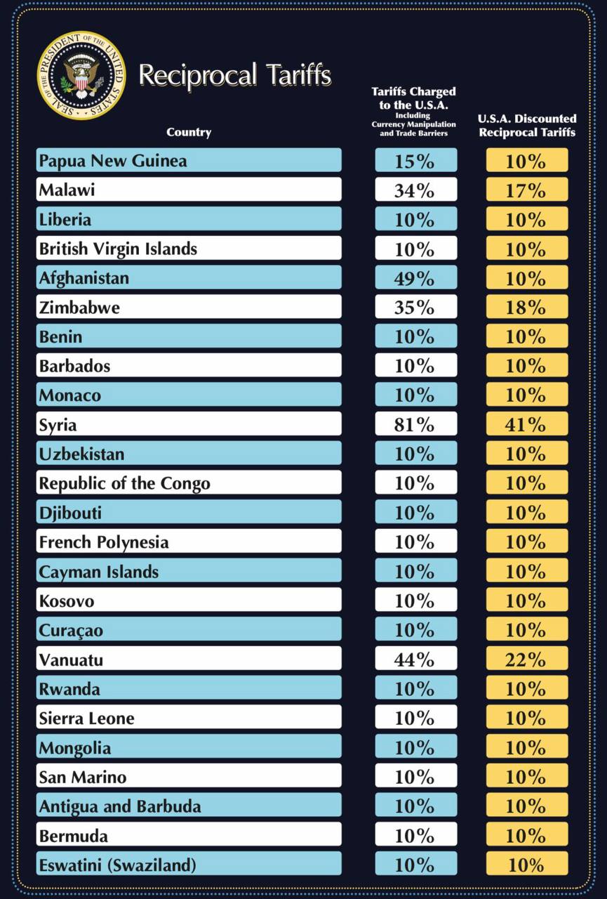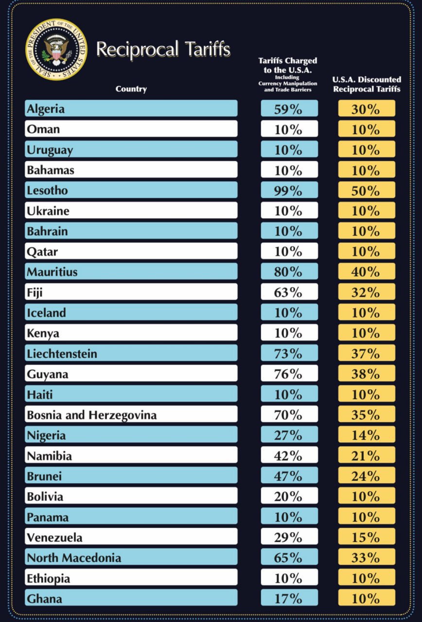 Всего в список тех, против кого США ввели пошлины, вошли 183 страны и Европейский Союз. Некоторые из крупнейших торговых партнеров США - ЕС, Япония, Вьетнам и Китай. В частности, для Китая показатель наложенной пошлины сейчас превышает 50%.