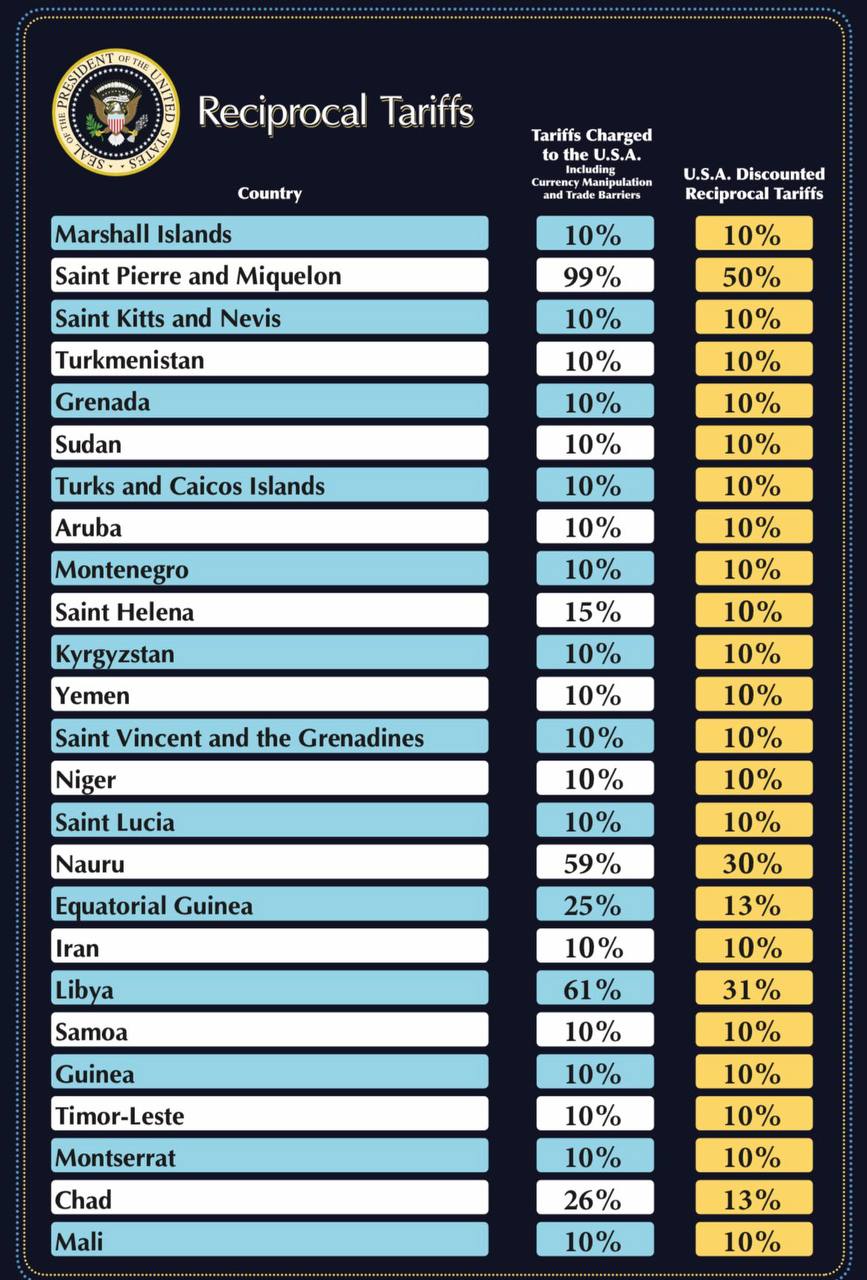Кроме того, Трамп даже обложил 10% импортными пошлинами незаселенный архипелаг в Индийском океане. Речь об острове Герд и островах Макдональд. Это небольшой архипелаг в южной части Индийского океана, который с 1947 года принадлежит Австралии. Там нет постоянного населения, однако есть большие популяции пингвинов, тюленей, морских птиц и, отныне, американские пошлины.