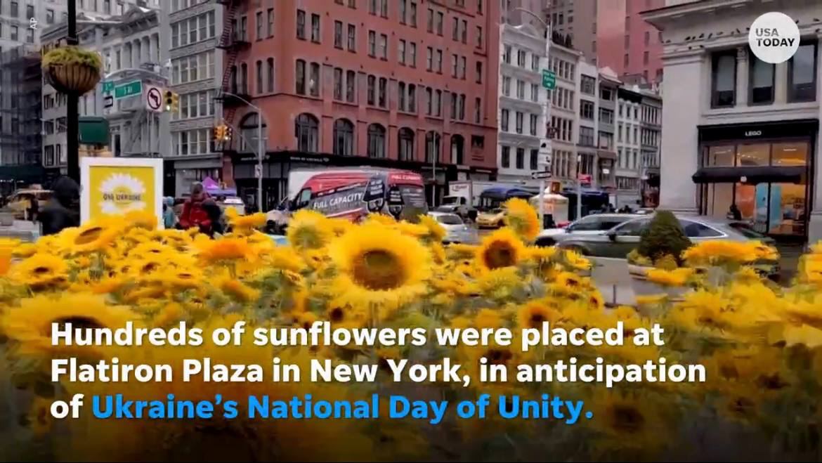 В честь празднования Национального Дня Соборности Украины в центре Нью-Йорка появилась инсталляция из 335 подсолнечников. Каждый цветок символизирует день полномасштабной войны, развязанной Россией 24 февраля 2022 года.
