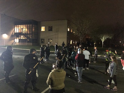 Во время протестов кто-то прострелил дверь полицейского участка, также были повреждены несколько полицейских автомобилей и ограблены магазины в торговых центрах. Чтобы прекратить беспорядки, полицейские применили слезоточивый газ.