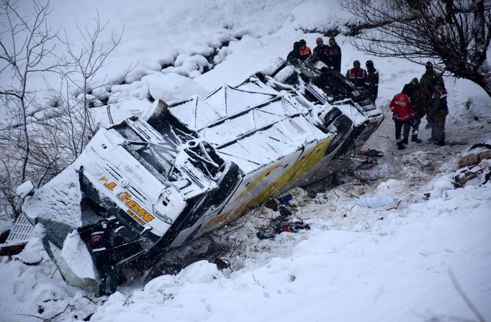 Инцидент произошел в провинции Муш. Водитель автобуса по неустановленной на данный момент причине потерял управление над транспортным средством. Автобус вылетел с проезжей части, перевернулся и рухнул в замерший ручей.