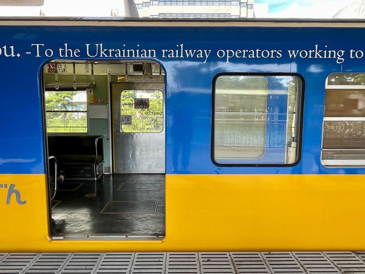 Японская транспортная компания Kotohira Railway, как сообщает Укринформ, в городе Такамацу в префектуре Кагава запустила поезд в цветах украинского флага.