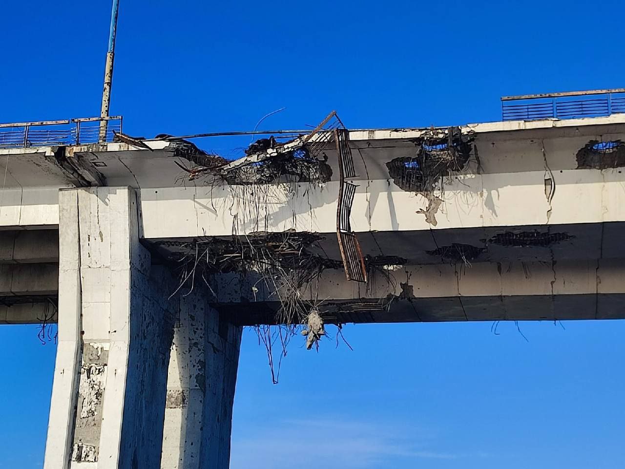 15:37 Вид части Антоновского моста после точных ударов HIMARS.