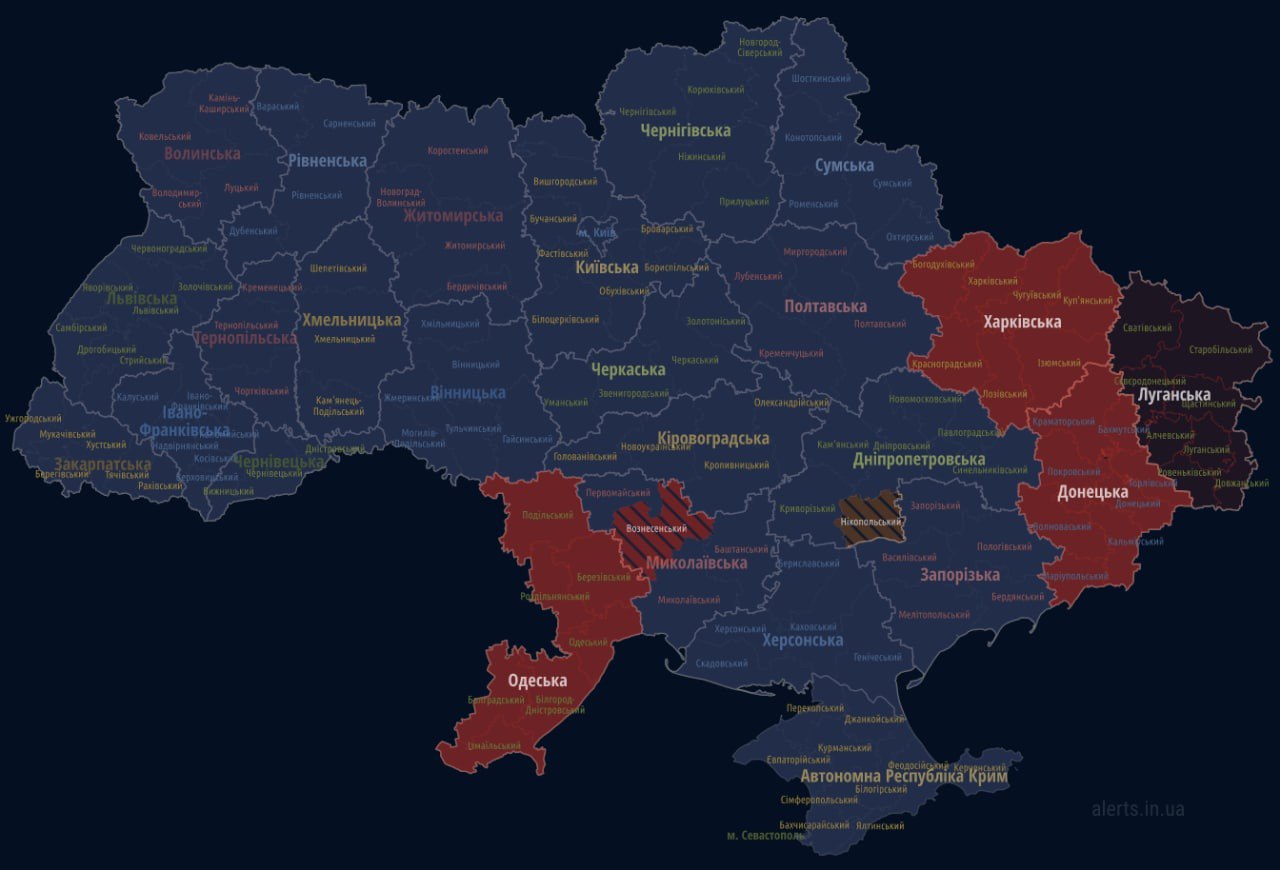 16:17 В разных регионах Украины сообщается о "прилетах" ракет и БПЛА. Также сообщается о том, что часть из них были уничтожены силами ПВО. Сведения поступают из Киевской, Одесской, Винницкой, Ивано-Франковской, Хмельницкой и других областей.