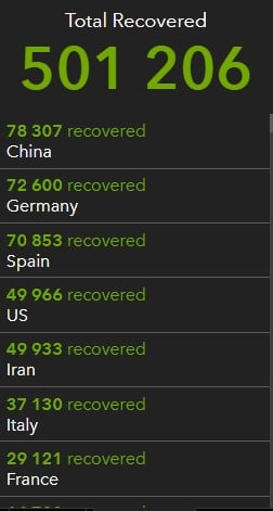 А выздоровели от коронавируса уже 501 206 человек. В Китае - 78 307 человек, в Германии - 72 600 и в Испании - 70 853.