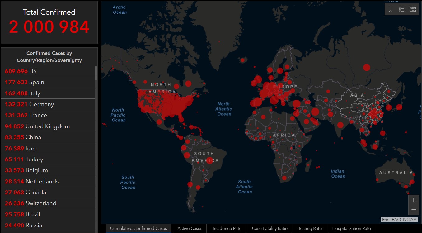 Во всем мире более 2 миллионов человек заразились коронавирусом с начала пандемии COVID-19.
