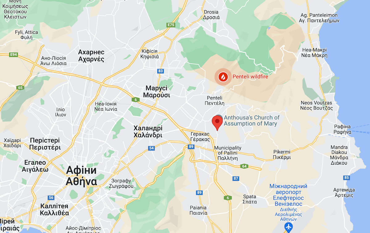 Пожар быстрыми темпами продвигается к северу от Антусы в направлении горного хребта Пентели, тогда как огонь охватил леса над Драфи (северная сторона Драфи – регион Ваяти).