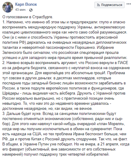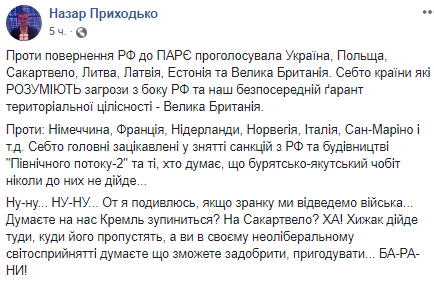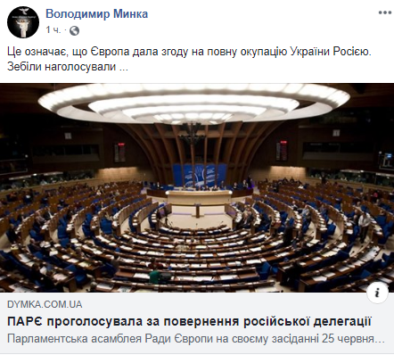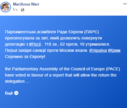 В сети поднялась волна возмущения из-за возвращения в ПАСЕ России без ограничений права голоса.