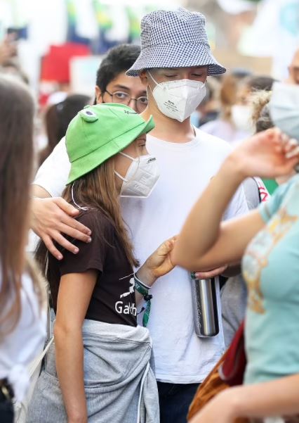 Молодой парень, с которым Грету Тунберг засекли в Италии, был одет в белую футболку и бело-голубую клетчатую шляпу, а его лицо прикрывала защитная маска.