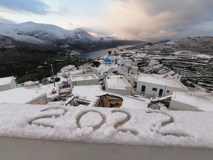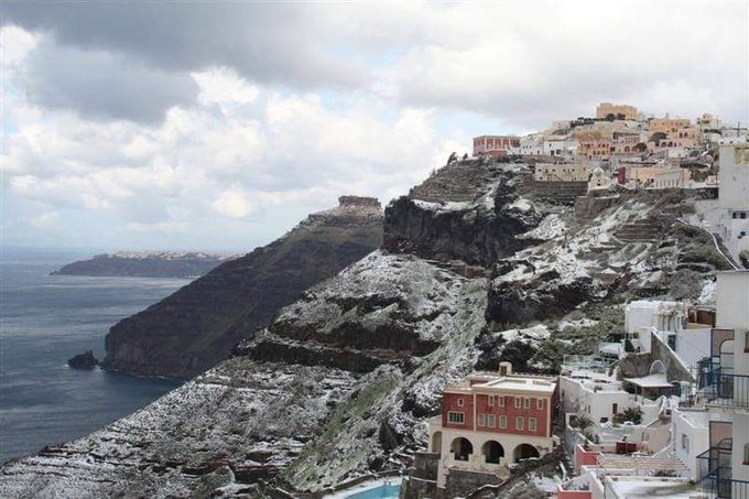 Популярный греческий курорт Миконос, который расположен в Эгейском море, в воскресенье засыпало снегом.