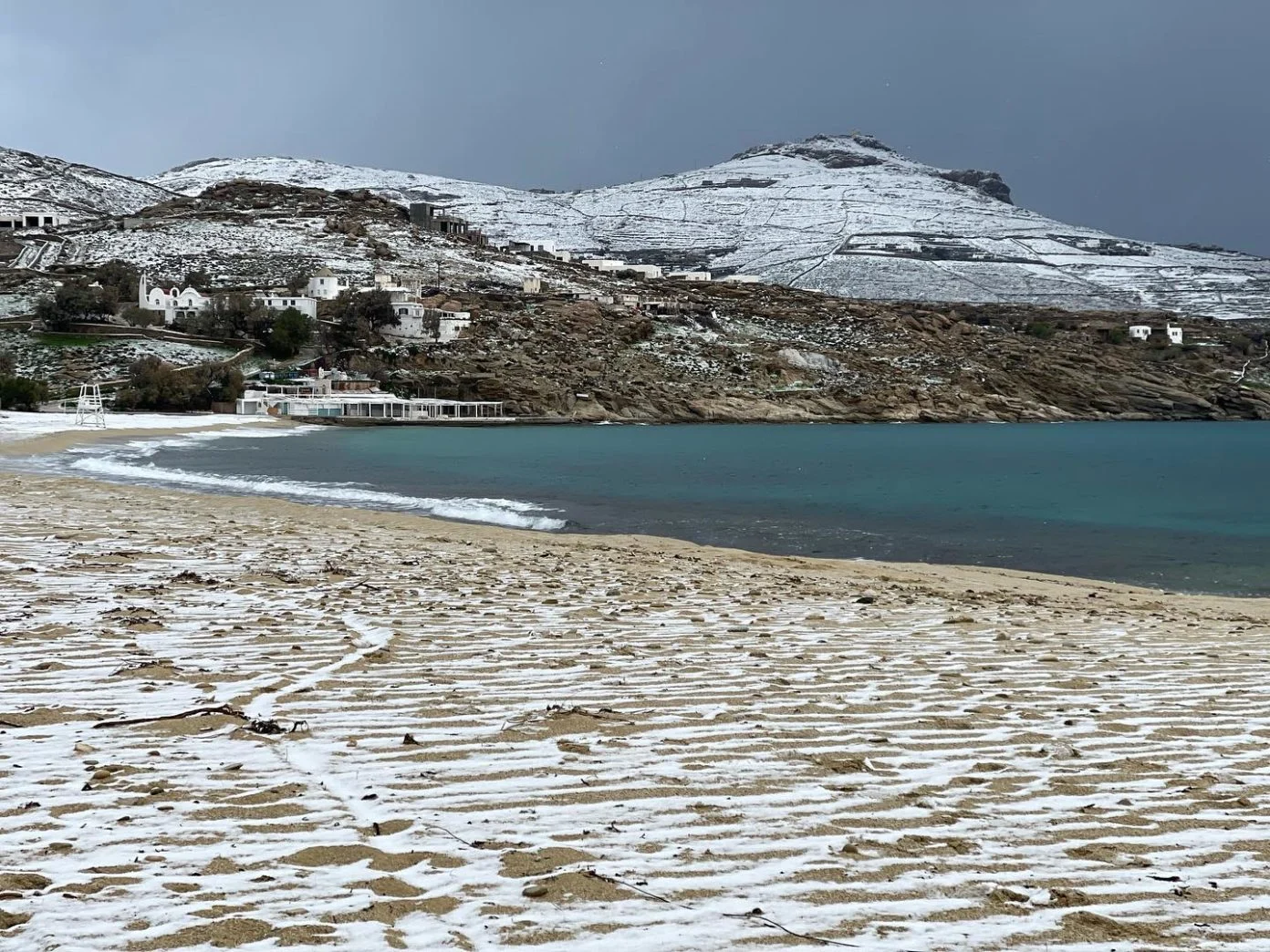 Журналистам удалось запечатлеть заснеженные пляжи Псару, Супер Пэрэдайз и Элия.