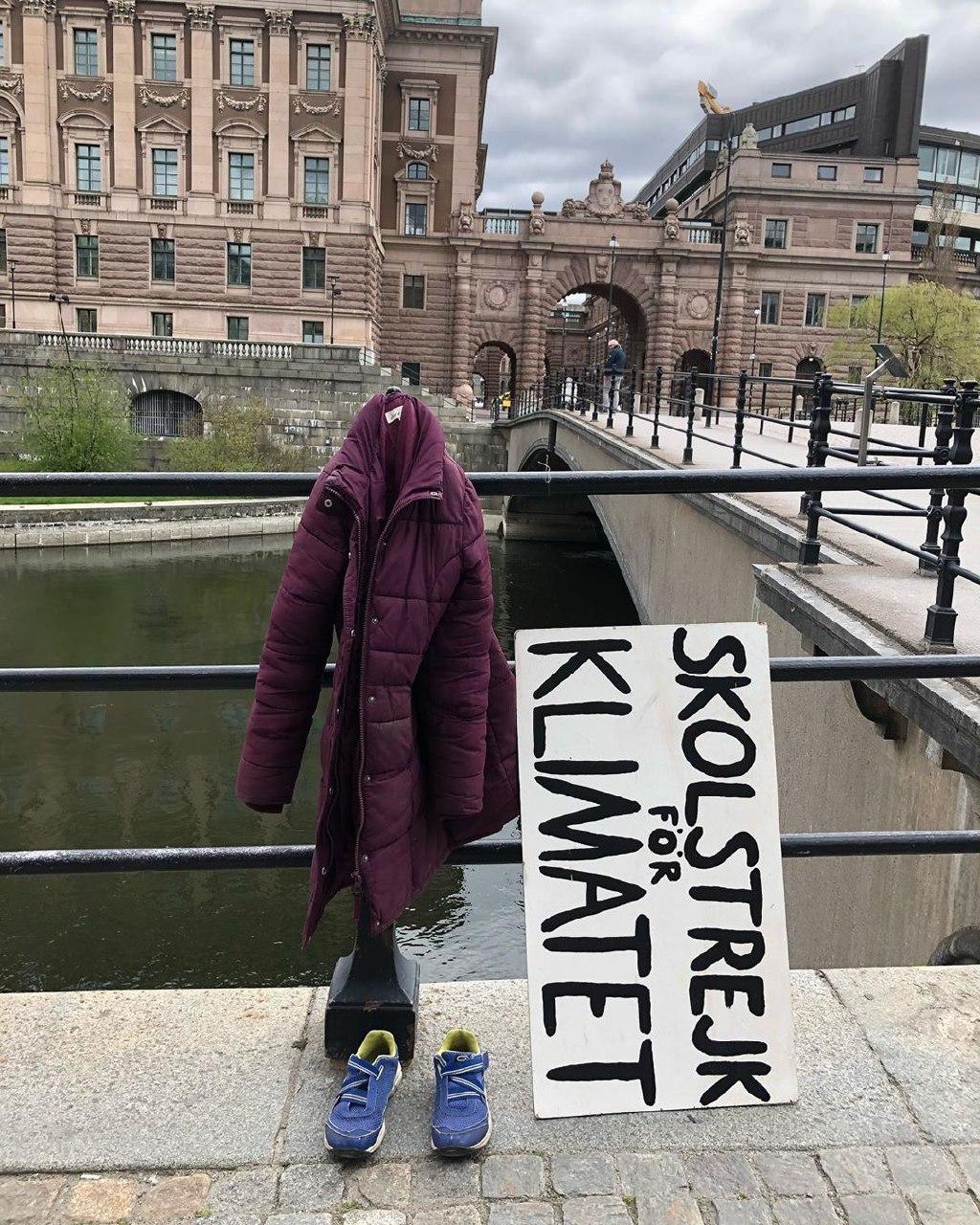 В конце-концов девушка придумала, как продолжить свои уличные пикеты и при этом не нарушать условия карантина. 17-летняя экоактивистка взяла табличку и свою одежду, развесила на мосту и сделала фото. Знак протеста есть, а Греты на фото - нет.