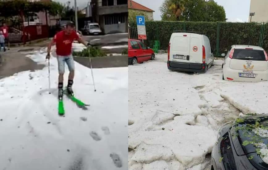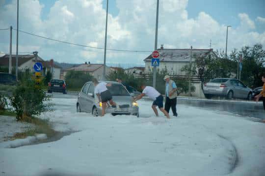 По данным издания, непогода разбушевалась 20 июня и охватила район Цетины, распространившись на приморские города Трогир и Каштела.