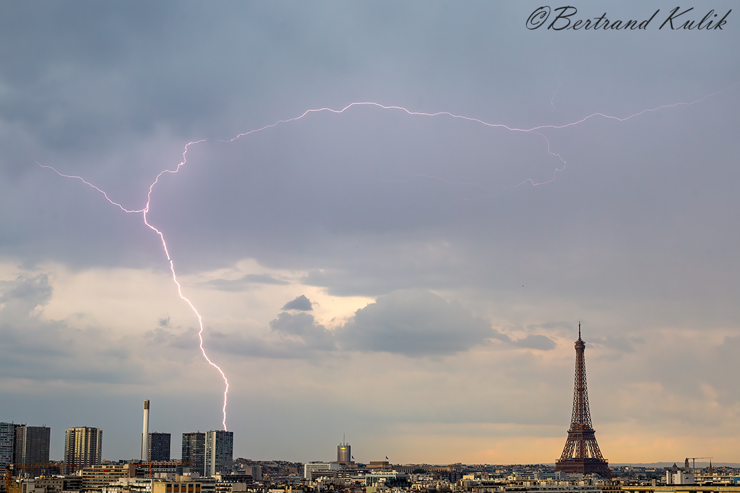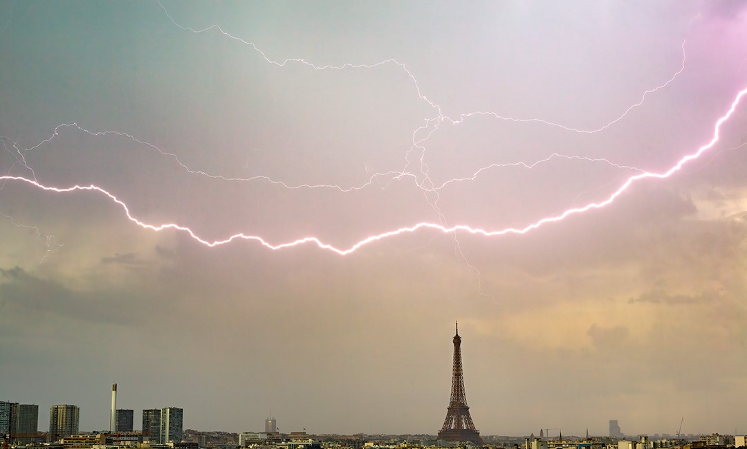 В воскресенье, 12 мая, во время сильной грозы в столице Франции, Париже, молния попала в самолет, пролетавший над Эйфелевой башней.