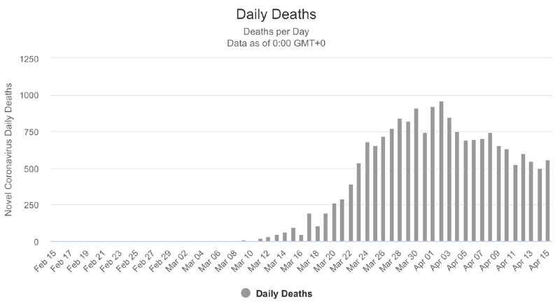 В четверг, 16 апреля, в Испании назвали новое "суточное" число смертей от коронавируса - умер 551 человек, общее число жертв составляет 19 130 человек.