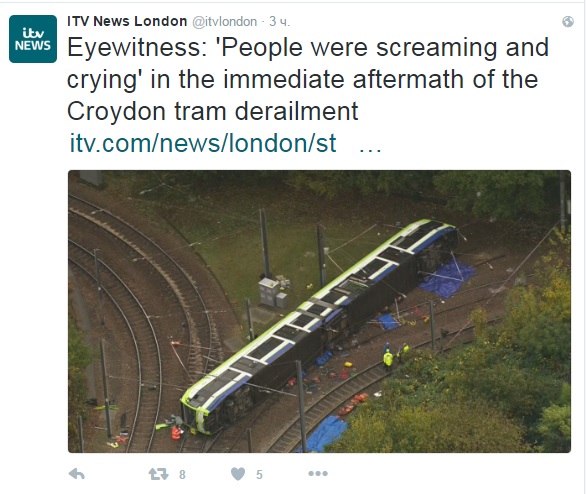 В столице Великобритании – Лондоне – в результате аварии трамвая погибли семь человек и около 50 были доставлены в больницу.