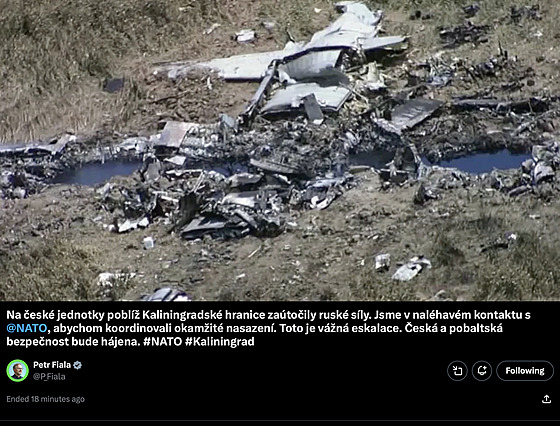 "Чешские войска у границы с Калининградом подверглись нападению российских сил. Мы поддерживаем срочную связь с НАТО для координации немедленного развертывания", - говорится в посте, который появился сегодня утром в аккаунте премьер-министра.