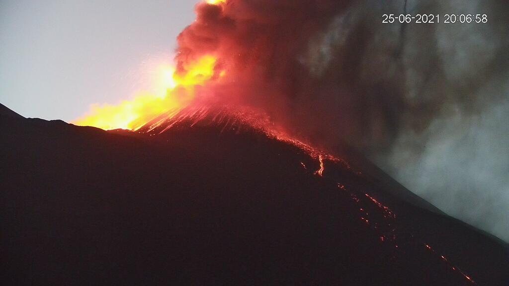 В субботу, 26 июня, действующий самый большой вулкан Европы на острове Сицилия - Этна, снова извергался оранжевой лавой и выплескивая пепел.