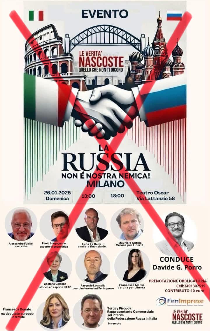 В Италии на январь 2025 года Россия смогла организовать и запланировать ряд своих пропагандистских "культурных" мероприятий.