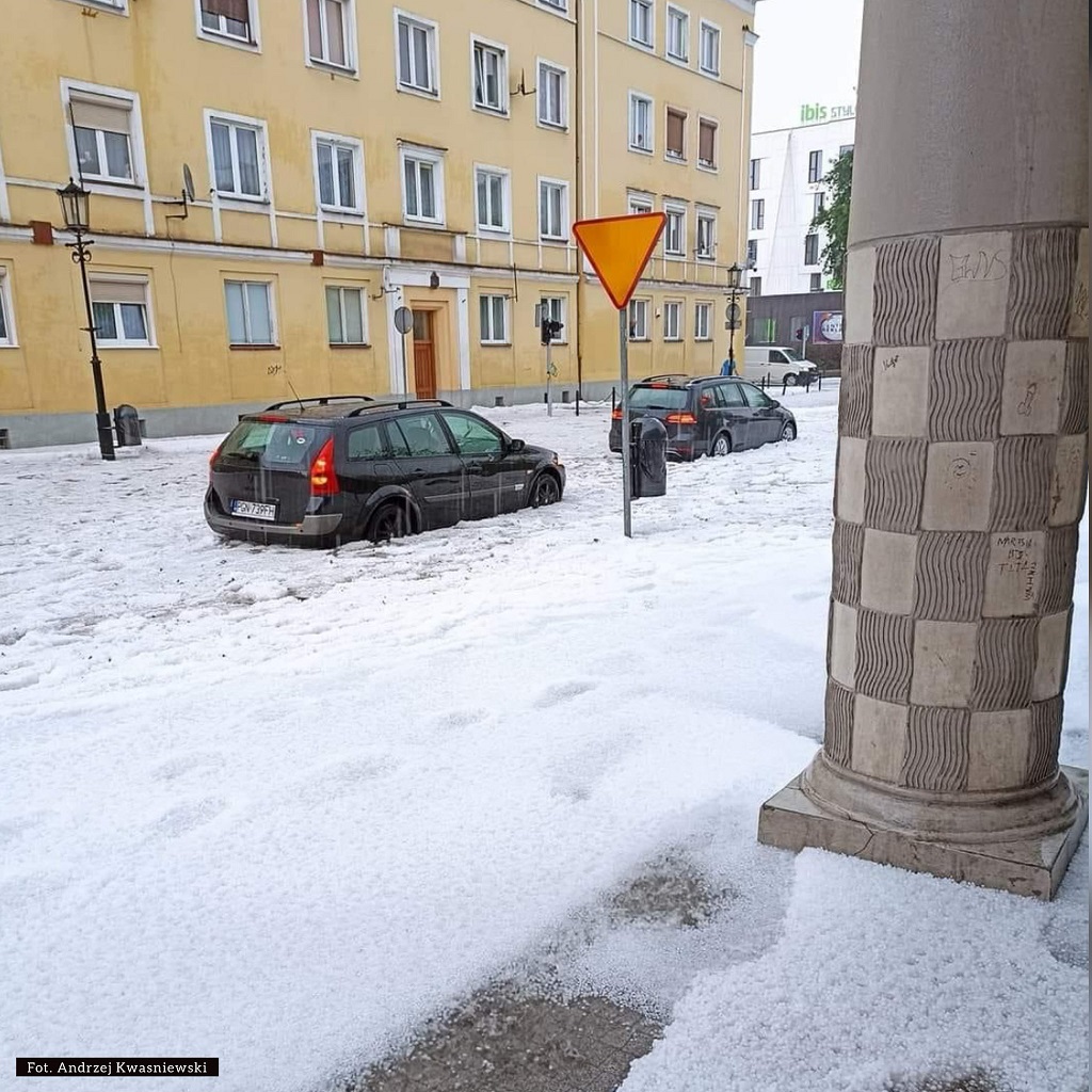 Так, в понедельник, 20 мая, над Польшей прошел мощный грозовой фронт с сильными осадками и градом. В результате наводнения этим вызванного под водой оказался город Гнезно, в то время как некоторые другие города страны усыпало градом.