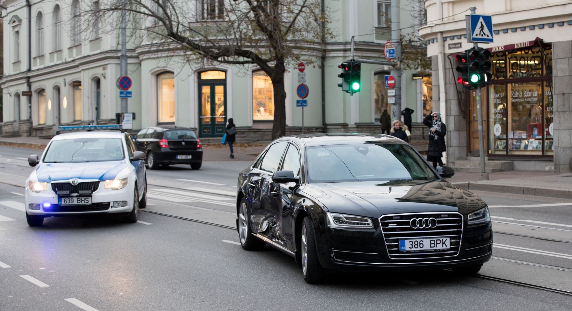 Сегодня, 25 октября, в Таллинне перед зданием Драматического театра в служебный автомобиль премьер-министра Эстонии Юри Ратаса врезалась машина.