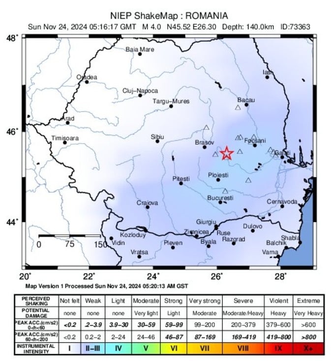 В воскресенье, 24 ноября, в Румынии произошло два землетрясения подряд. Сила землетрясений составляла 4,1 и 3,5 балла.
