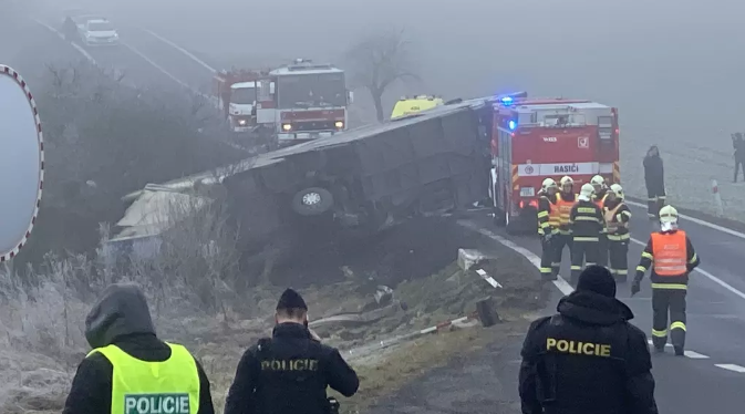 Автобус с 70 детьми, который попал в аварию 9 февраля в Чехии, перевернулся после того, как по неизвестным причинам съехал с дороги.