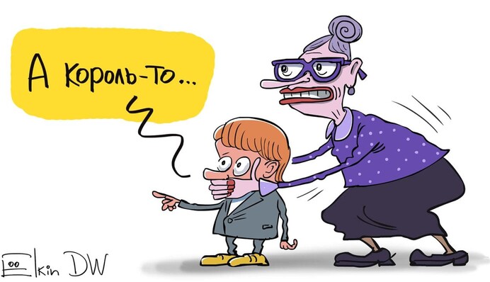 Напомним, по сюжету сказки Ханса Кристиана Андерсена, король нанимает двух аферистов, которые обещают сшить платье из ткани, которую "видят только глупцы". Все не видят обновку, король стоит голый, но, конечно, говорят, "какое красивое платье", чтобы не показаться глупыми. Когда король ходит голым по улице, только один маленький мальчик сказал: "А король-то голый!". Эта фраза стала крылатой.