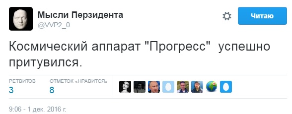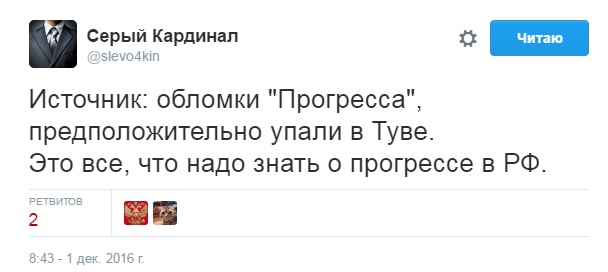 Также новость о крушении "Прогресс-МС04" прокомментировали пользователи Twitter.