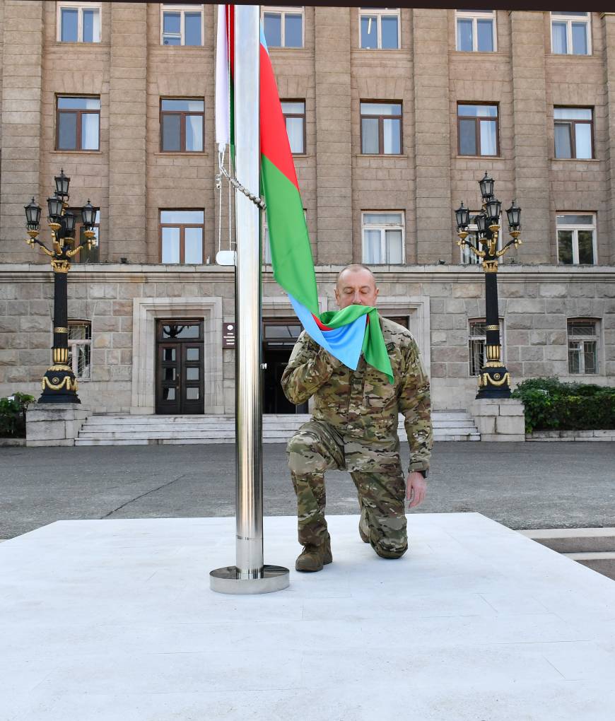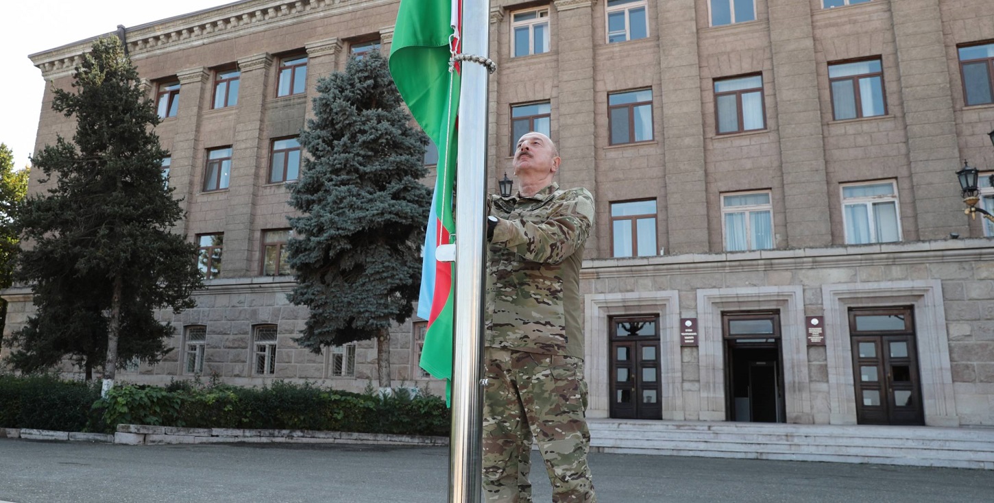 Президент Азербайджана Ильхам Алиев поднял государственный флаг в городах, которые были под контролем "Нагорно-Карабахской Республики (Арцах)", что перестанет существовать со следующего года. Также азербайджанский флаг теперь развевается и в столице Ханкенди (Степанакерти) впервые за 32 года.