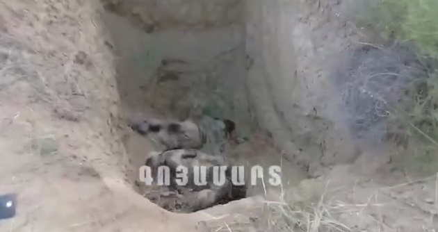 На снятых кадрах видно подбитую боевую технику, среди которой – боевая машина пехоты, танки и вертолет. Показаны также убитые азербайджанские солдаты.