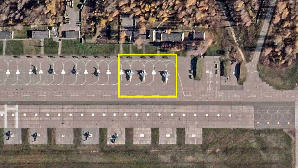Были опубликованы фото аэродрома - они были сделаны 18 и 31 октября компанией Planet Labs. Эти самолеты могут нести на себе гиперзвуковые аэробаллистические ракеты Х-47М2 "Кинжал", а также способны запускать их на расстоянии в 2 000 км: речь идет об истребителях с регистрационными номерами: RF-92462, RF-92339 и RF-92333.