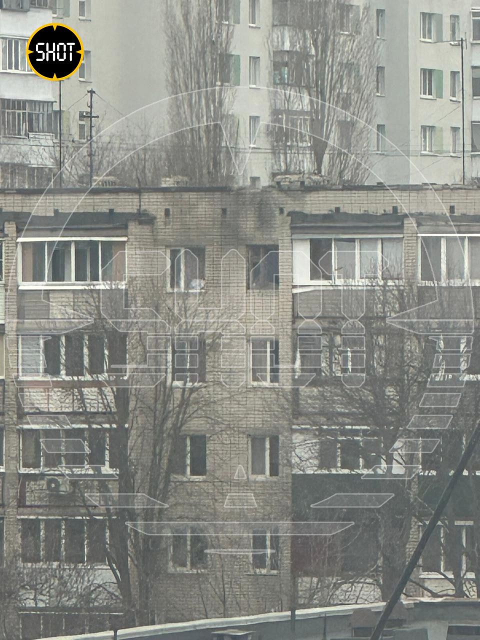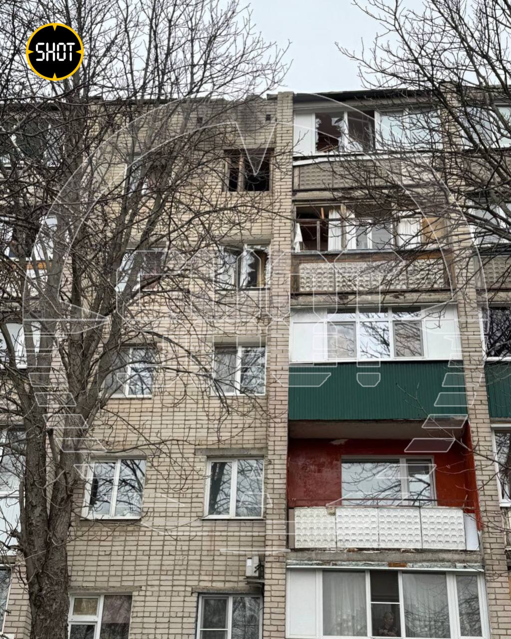 Другой БпЛА попал в многоквартирный дом. Губернатор Белгорода Вячеслав Гладков указывал, что пострадавших нет, однако в результате взрыва выбиты окна в нескольких квартирах, а также поврежден фасад и кровля здания.
