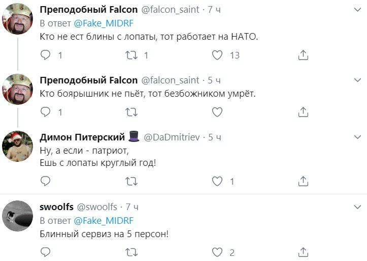 "Кто не ест блины с лопаты, тот работает на НАТО", "А кто украл черенки к тарелкам? Чем есть теперь?" - комментируют опубликованные фото в соцсети.