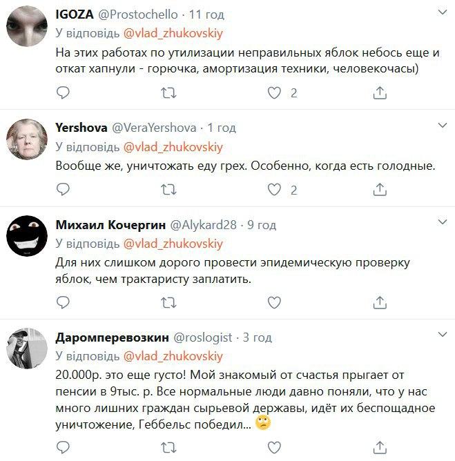 "В этой проклятой стране всегда найдется бульдозерист, который раздавит не только яблоки, но и людей", - пишут в сети.