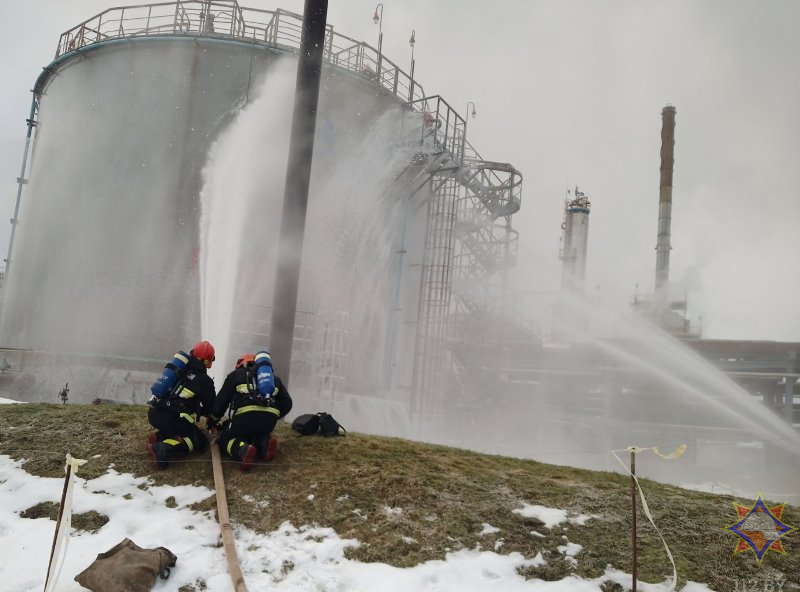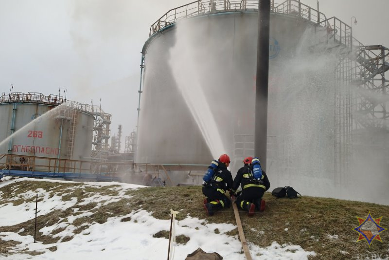 По данным белорусского ведомства, горел резервуар РВС-2000 с некондицией нефтепродуктов установки АВТ-6. Такой вертикальный резервуар содержит 2 тысячи кубометров жидкого вещества. Через час спасатели потушили пожар до того, как огонь распространился бы за пределы конструкции этого резервуара.