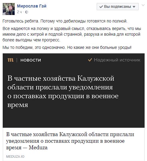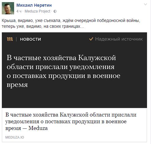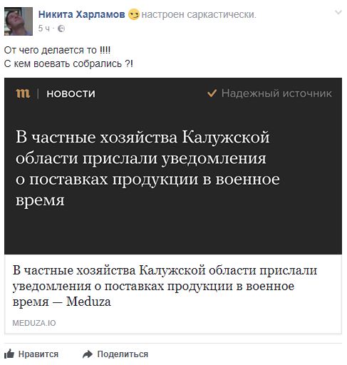 В частные хозяйства Калужской области РФ стали приходить уведомления о том, что в военное время они должны будут поставлять свою продукцию для государственных нужд.