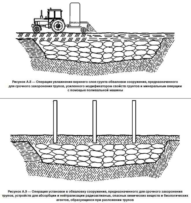 В последнем из них разъясняется принцип создания братских могил, а также расписываются технологии их дезинфекции и обезвреживания в случае радиационного загрязнения.