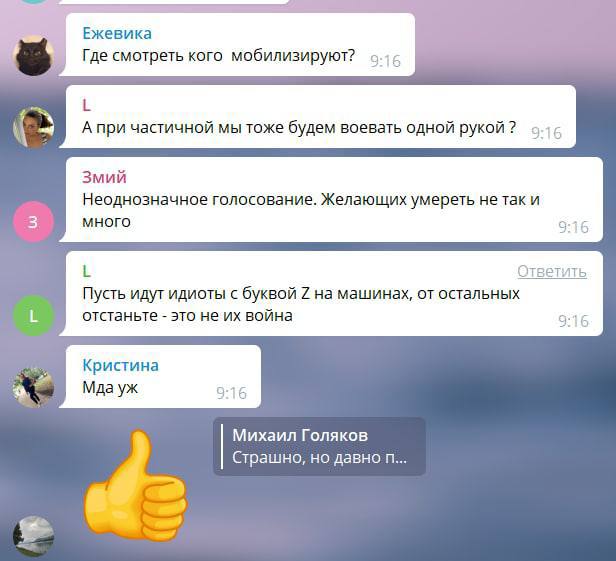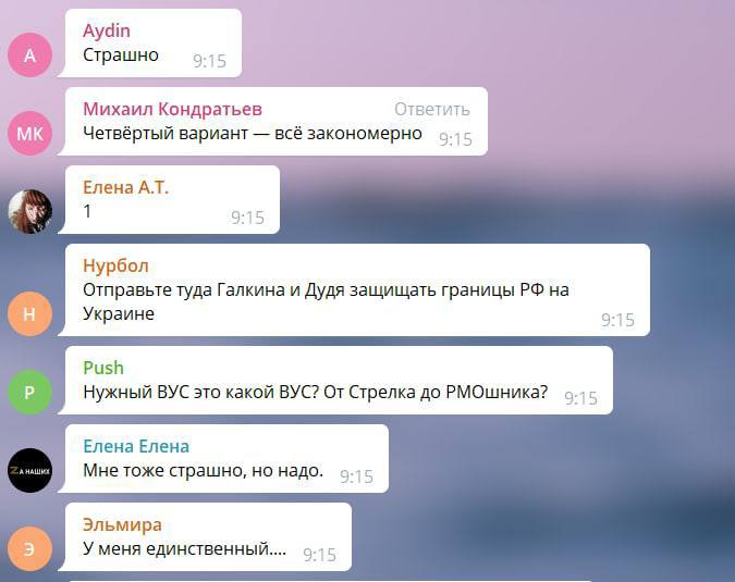 На других Telegram-каналах также можно проследить отношение россиян к происходящему – находятся единицы, которые считают, что давно пора было сделать подобное и что защищать родину их долг.