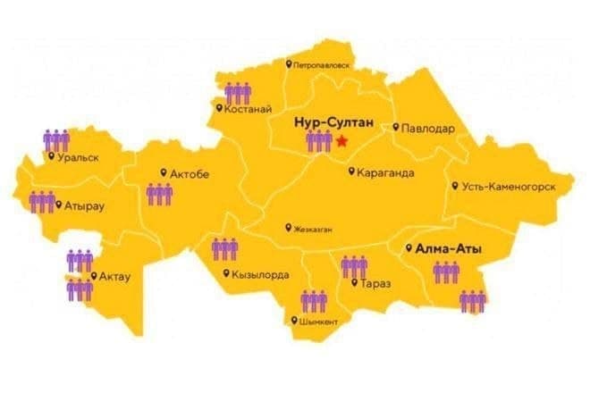 На карте видно, что режим чрезвычайной ситуации был введен в Нурсултане, а также в Алматы и Актау. В других крупных населенных пунктах - Уральске, Актобе, Шымкенте, Кошкетау, Павлодаре, Костанае, Жезказгане, Жанаозене, Семее, Усть-Камнегорске, Талдыкоргане - проходят массовые акции протеста.