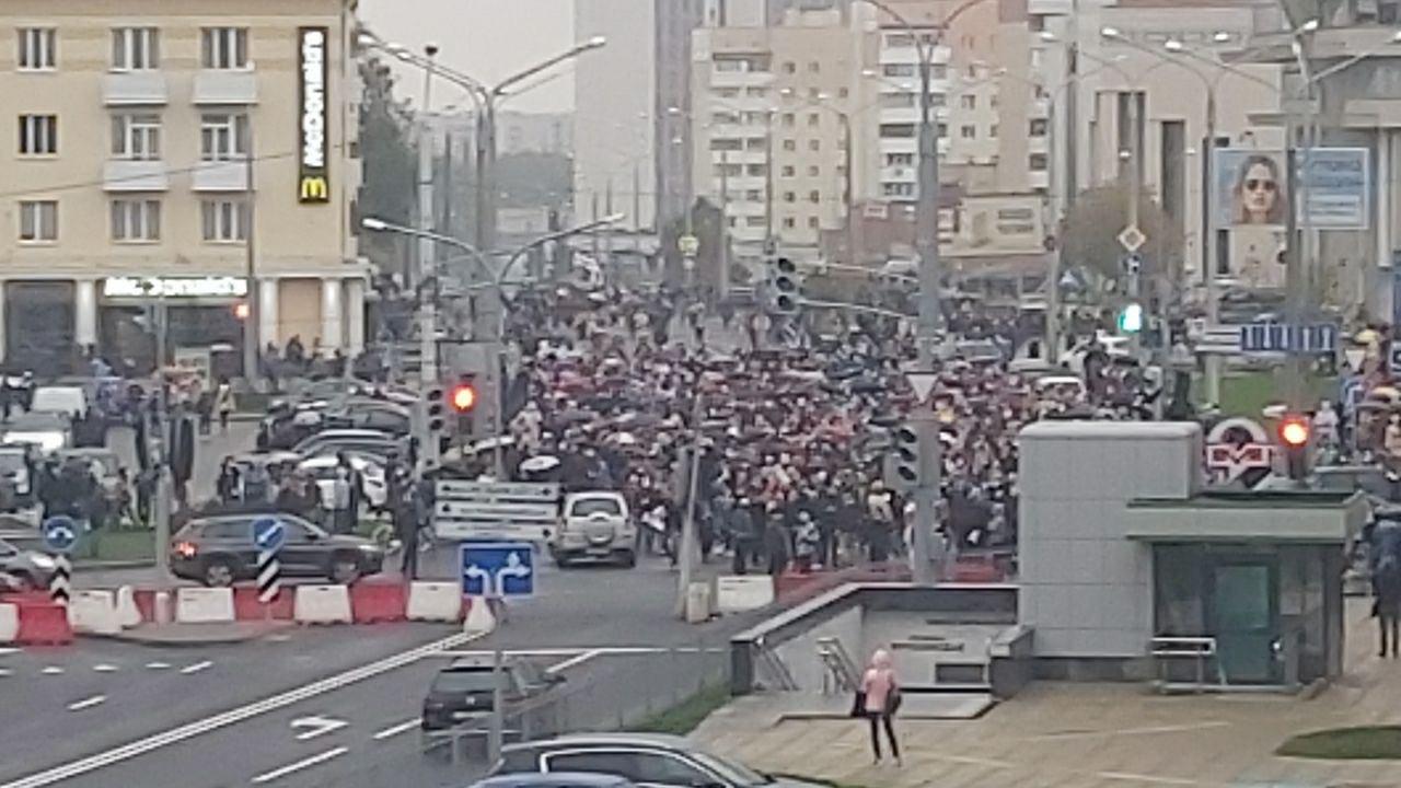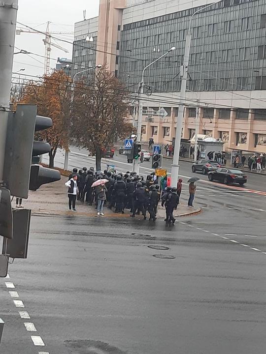 В сети появились новые кадры из Минска, где 11 октября проходит массовая акция протеста, там силовики начали разгонять белорусов светлошумовыми гранатами.
