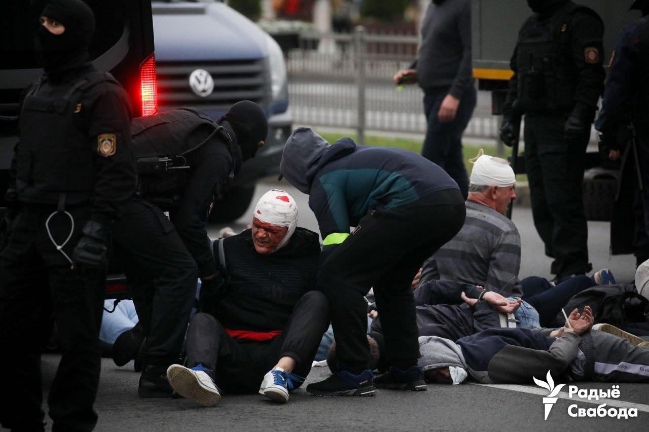 Людей, которые все же дошли к стеле, силовики начали жестко разгонять дубинками и с применением светлошумовых гранат. Кроме того они применяли против минчан перцовый газ. В МВД Беларуси отрицают эти сообщения.