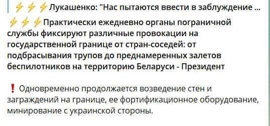 "Пограничная служба Белоруссии практически ежедневно фиксирует провокации на границах со странами НАТО", – заявил Лукашенко.