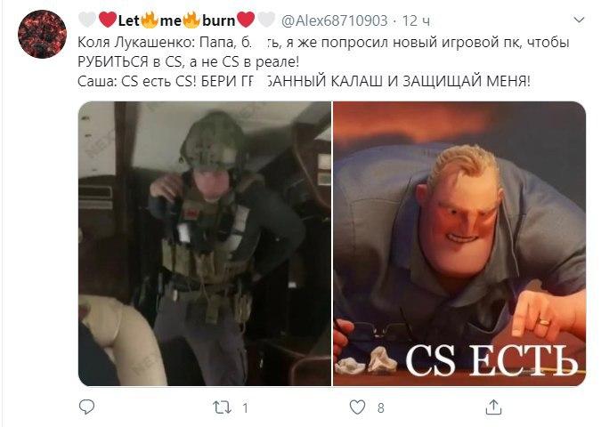 В частности, авторы мемов обыгрывают ситуацию с сыном Лукашенко, который якобы попросил новый игровой компьютер, чтобы "рубиться" в Counter-Strike, а получил "игру в реале".