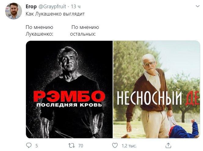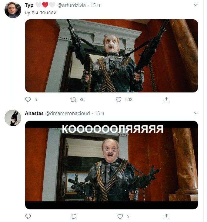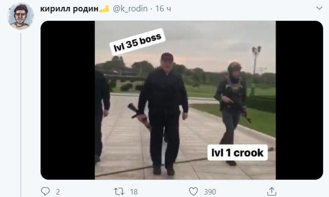 Президент Беларуси Александр Лукашенко дал повод для язвительных шуток в сети после того, как появился в воскресенье, 23 августа, в Минске, где проходила массовая акция протеста, вооруженный автоматом и в бронежилете. Рядом с ним был по-военному экипированный его сын Николай.