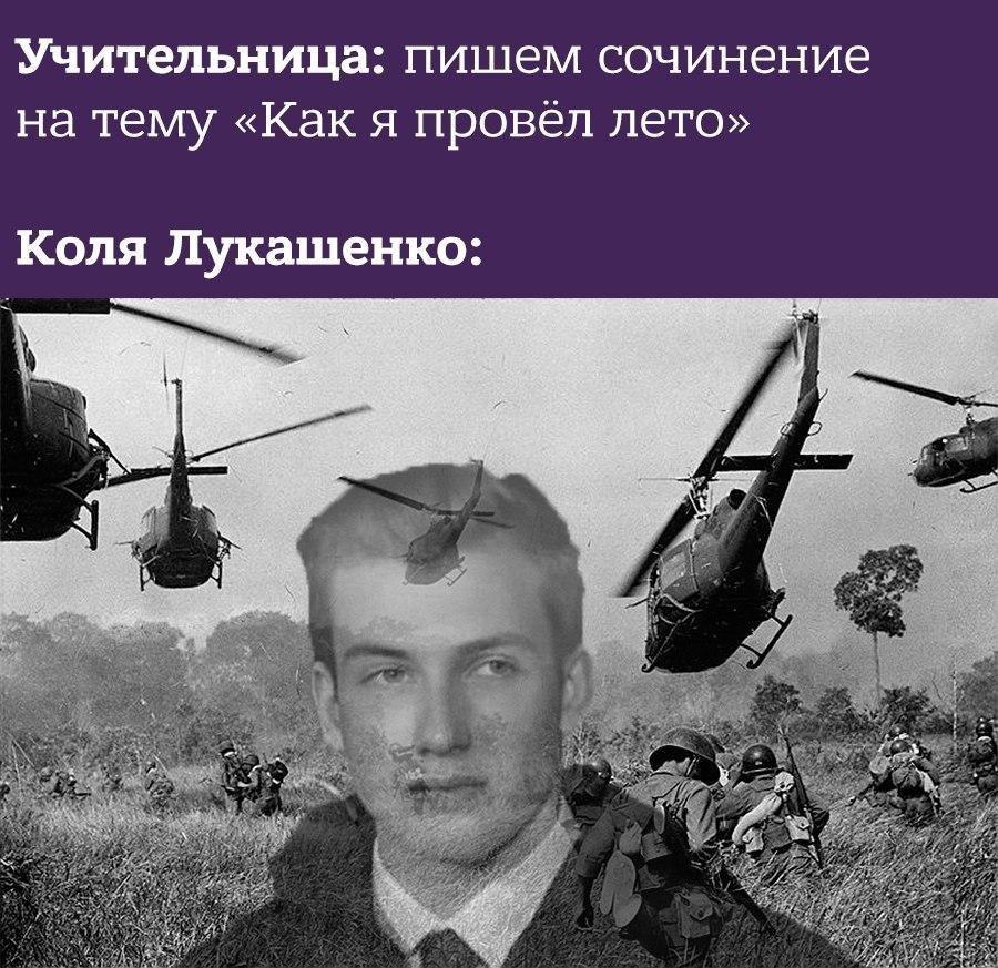Также авторы картинок представили себе, как Коля Лукашенко будет писать домашнее сочинение на тему "Как я провел лето".