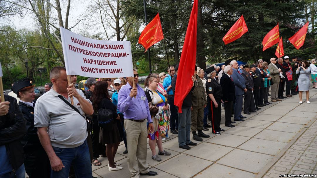Отмечается, что в митинге приняли участие больше пятидесяти человек, а одним из организаторов был Леонид Грач – коллаборационист, экс-глава Верховного совета Республики Крым, имеющий украинское гражданство. Ныне Грач возглавляет крымскую ячейку российской коммунистической партии.