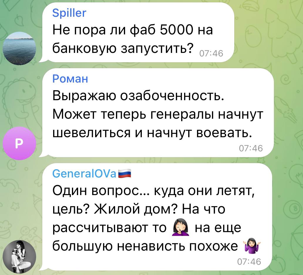 Так, некоторые россияне вдруг взволновались, что целями дронов стали жилые дома в то время, как жилье украинцев обстреливают или уничтожают уже больше года. Многие возмущаются бездействием генералов и надеются, что после этого они начнут "шевелится".